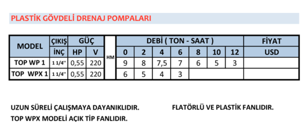 Plastik Gövdeli Drenaj Pompası (TOPWP1- WPX1)
